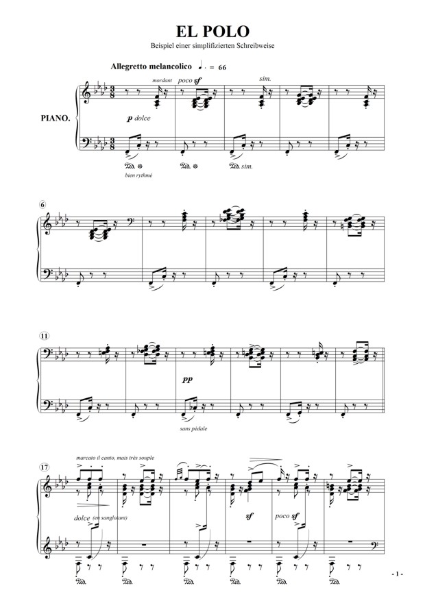 zur Verdeutlichung der unregelmäßigen metrischen Schwerpunkte der Melodie geradezu notwendig. Aus der magischen Flamenco-Formel „tanto es tan libre” hat erst Jahre nach Albéniz Federigo Mompou die